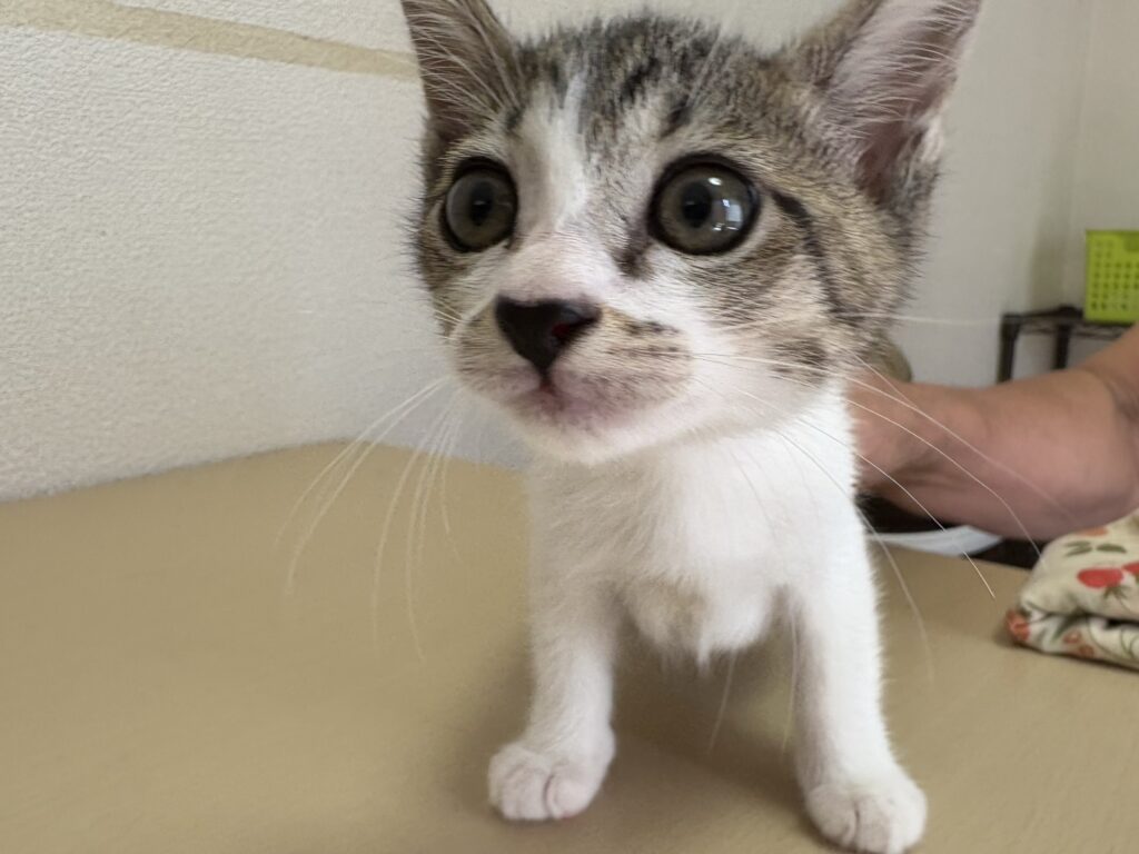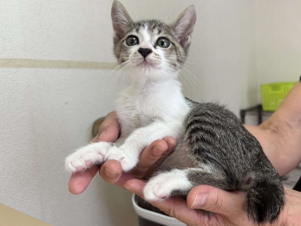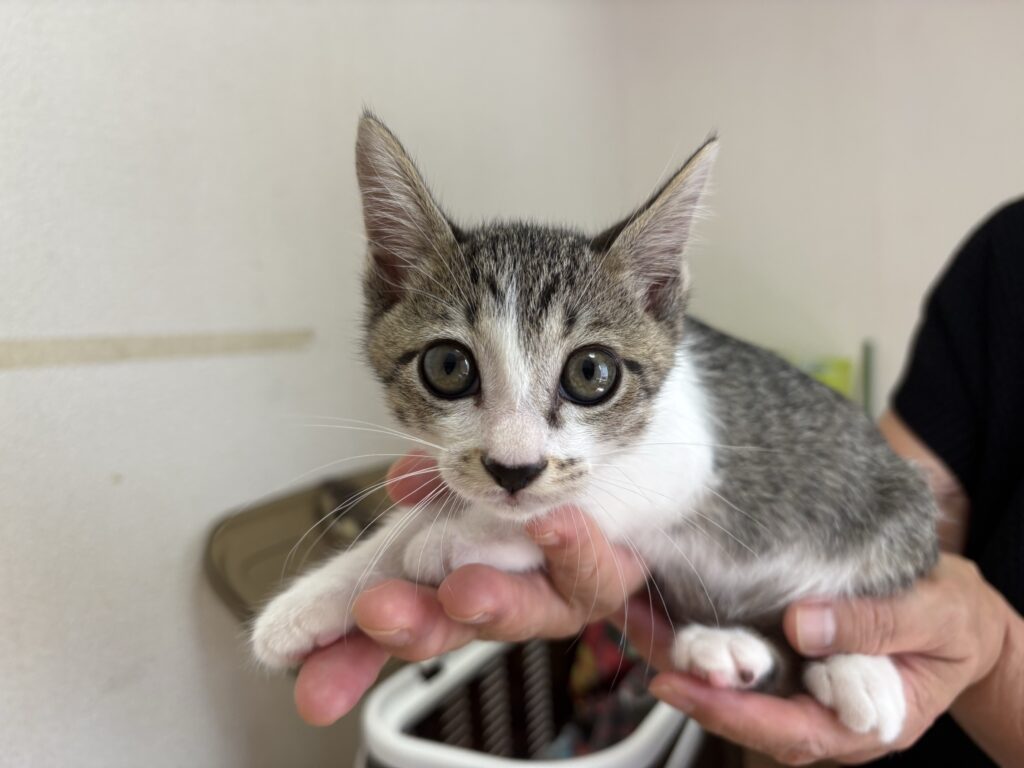ボランティアをしてくださっている方のお孫さんが、夕方、通学路の草むらに子猫がいると気がつき保護しました。