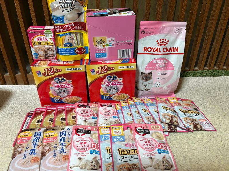 ドライフード、ミルク、ウエットフード、にゃんミルク