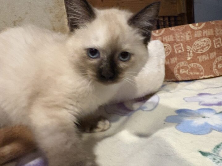 最初はフーフーと威嚇していたものの、そっと頭を撫でてスキンシップを取ると、すぐに慣れてきて、とても人懐っこい子になりました。