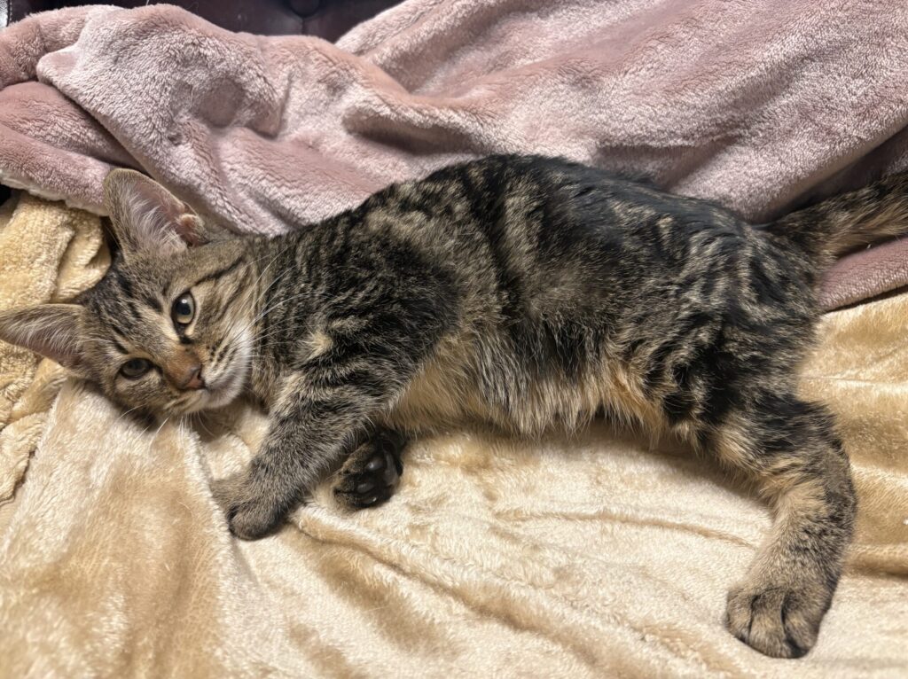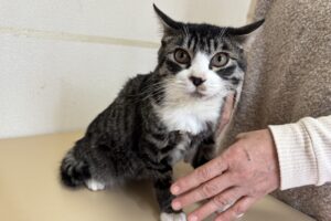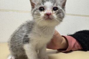 人を怖がる様子もなく、そっと近づくとスリスリと甘えてきてくれて、そのまま保護してシェルターへ連れて帰りました。