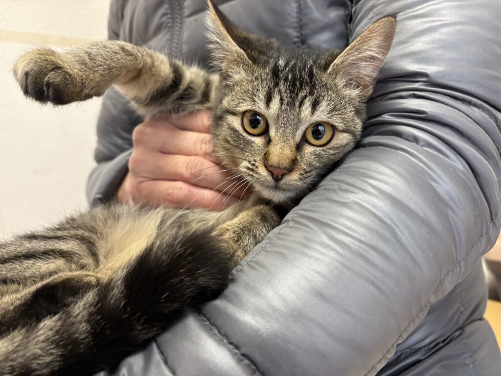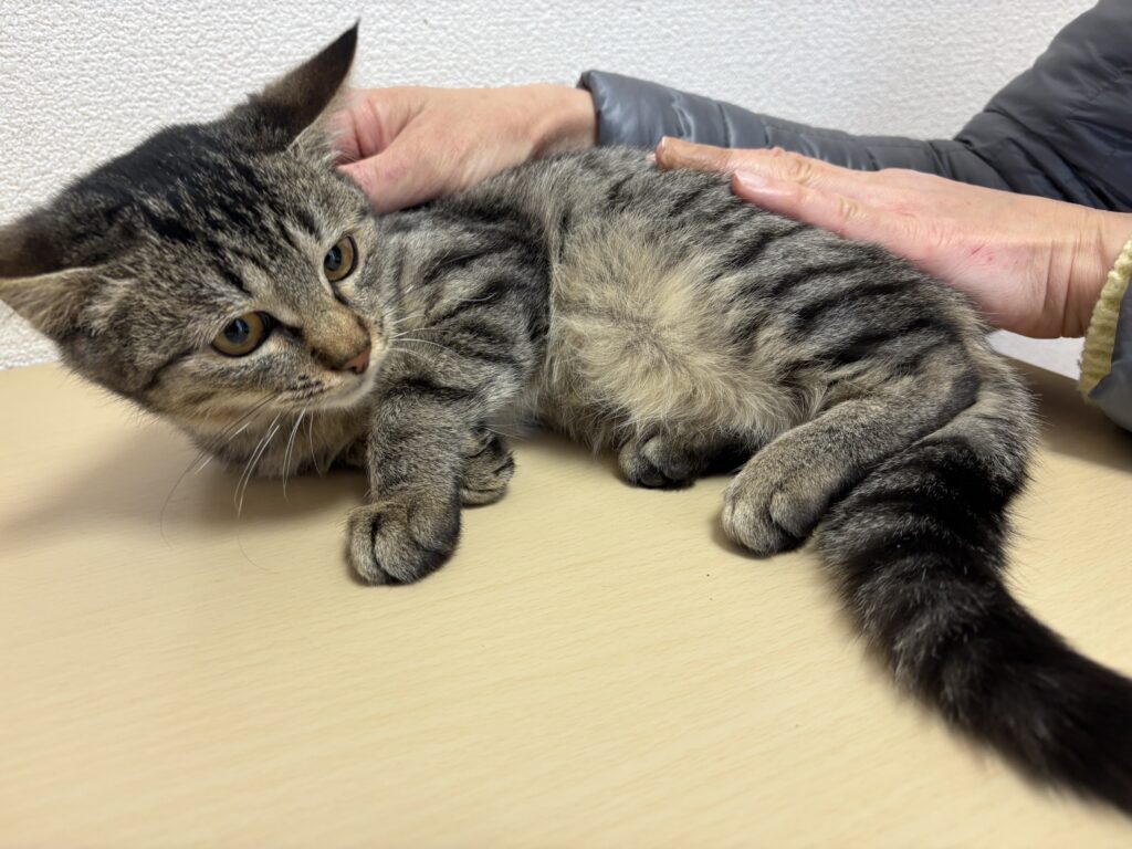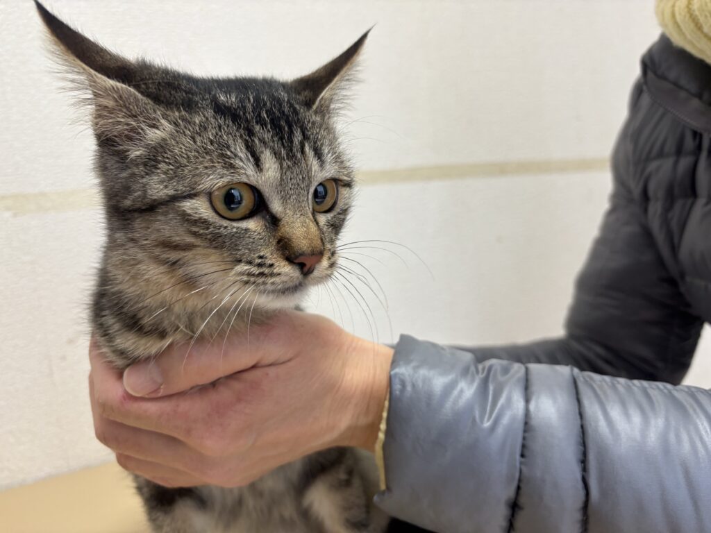 しばらく時間をおいて再度様子を見に行くと、その場に座ったまま動かず、周囲を探しても兄妹や母猫の姿は見当たらなかったため、保護することにしました。