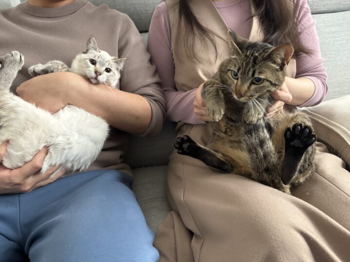 2匹はそれぞれ別の場所で保護され、これまでお外でお腹を空かせながら一生懸命生きてきた子たちです。ドリームキャットでは年齢も近く、とても仲良しなことから、ずっと「2匹一緒のお迎え」を願って里親様を募集してきました。