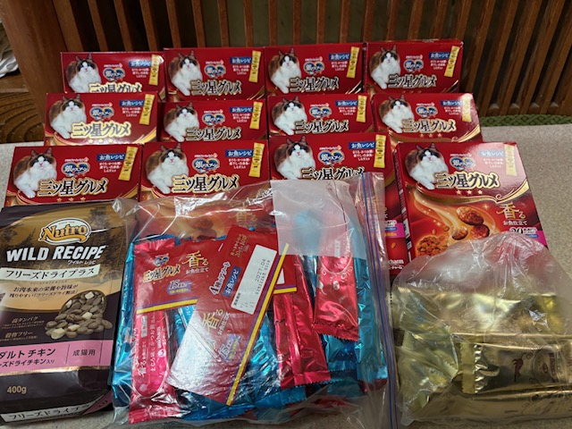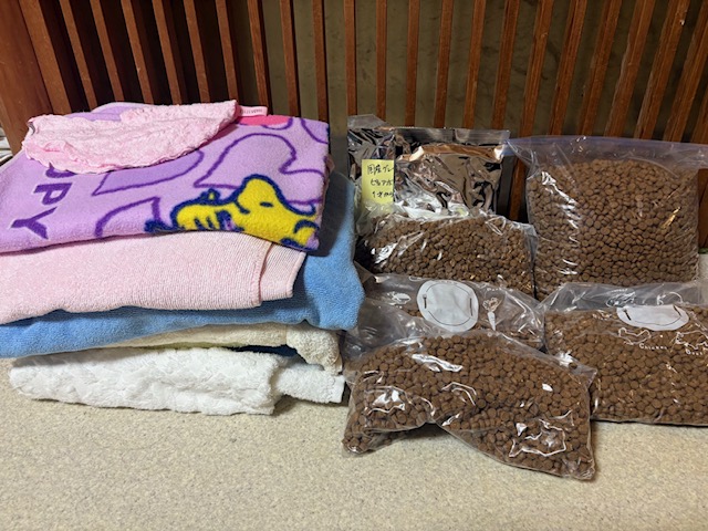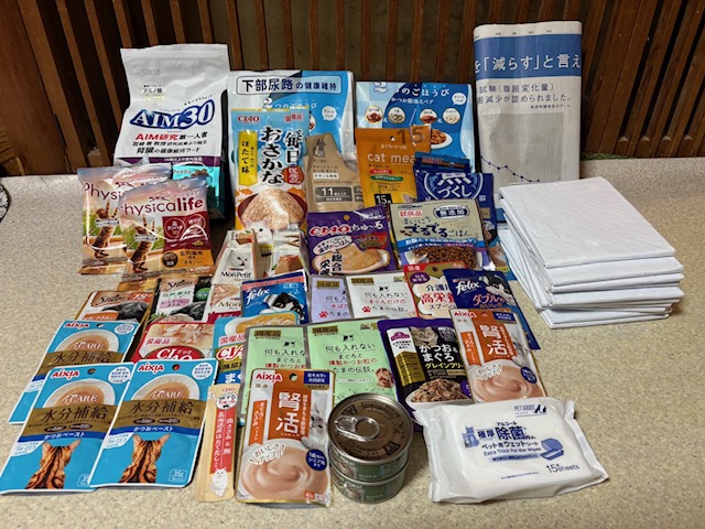 3月27日 A様:                                       タオル、カツオ節、ドライフード、缶詰、おやつ、チュール、ウエットフード、焼きがつお、焼きささみ、ベッド