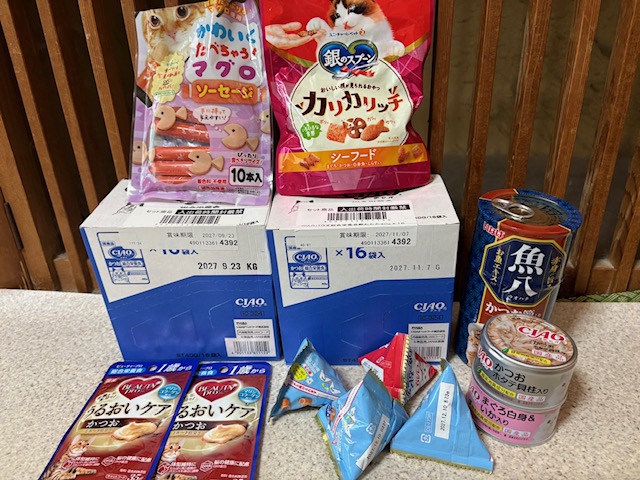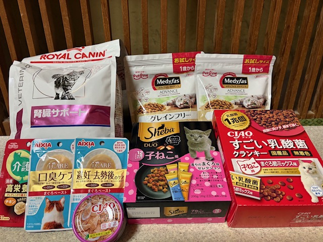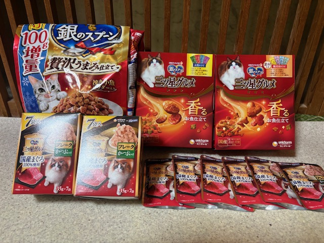 ドライフード、ウエットフード、チュール、爪研ぎ