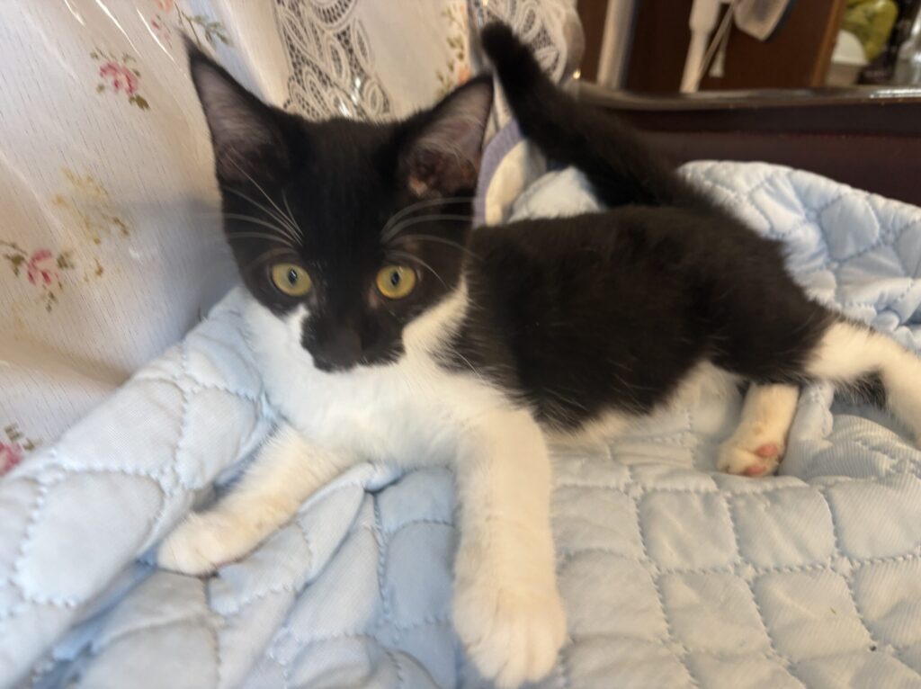 2025.06.17 里親決定 Web担当 白黒(オス):2025061701 6月5日、海岸で保護しました。 クリ君はクー君、ちーちゃんと3兄妹です。 性格は穏やかで、オモチャで遊んだり兄妹と一緒になって駆け回ったり元気に過ごしています。まだまだ小さく甘えん坊の子供です。 この子を家族の一員として大切にしてくださる優しい里親さんを募集致します。 猫ID 2025061701 名前 クリ君 性別 オス 年齢 6ヶ月 種類 白黒 健康状態 ノミ・ダニ駆除、虫下し済み ウイルス検査 猫エイズ・猫白血病ともに陰性 ワクチン 接種済み 避妊去勢 済み 掲載期間 随時 シェア! ポスト シェア はてブ 送る Pocket feedly